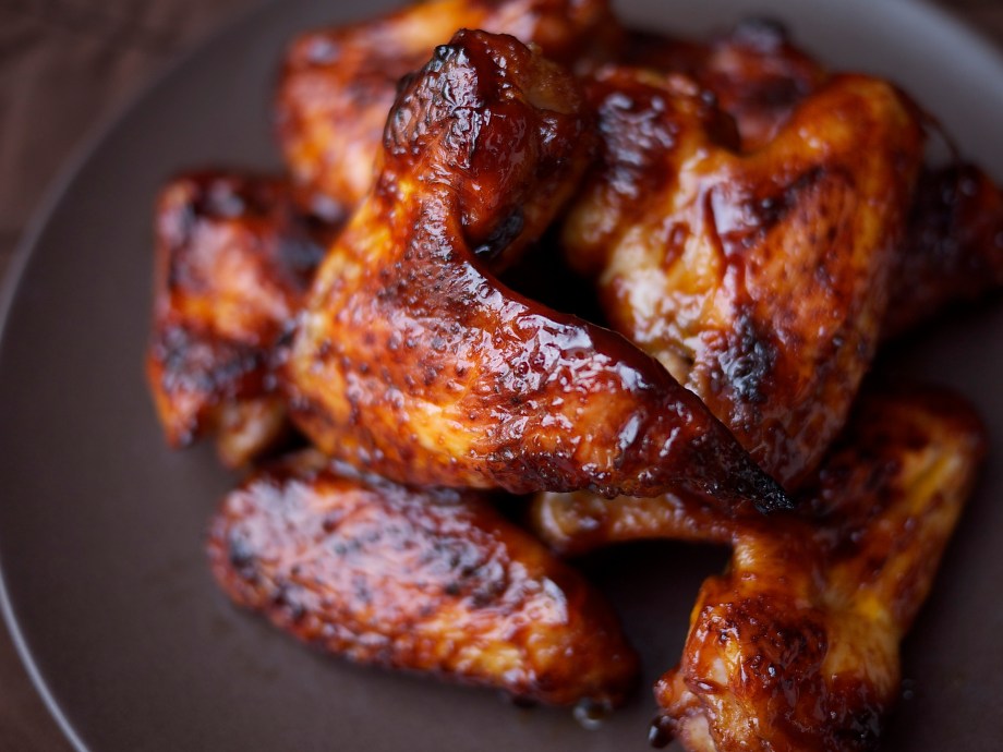 Line up your wings on a lined baking sheet and brush the sauce on the top of each wing. Flip it over and do the same thing on the other side.