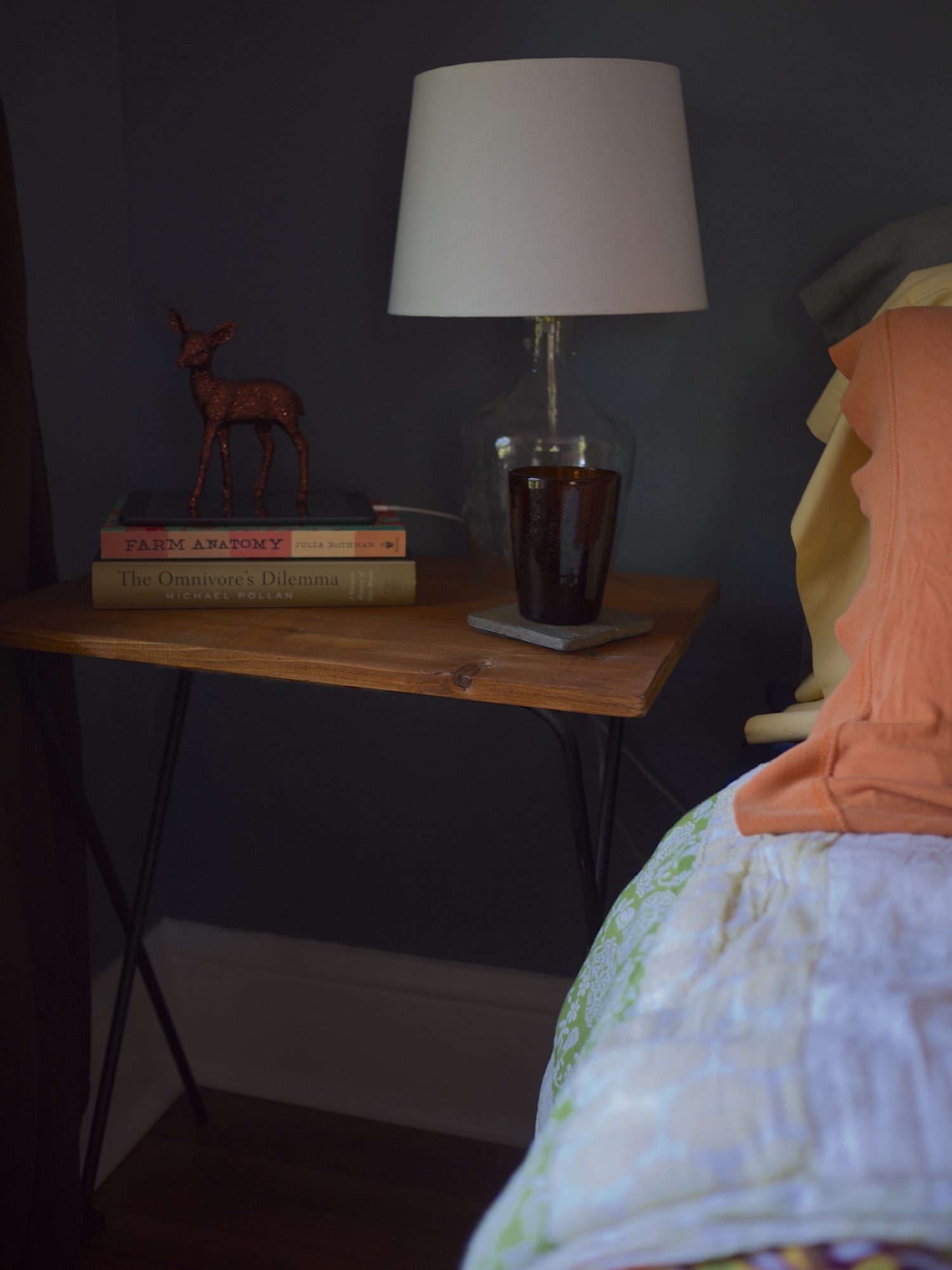 We’ve been in Asheville for six months now. Six. Months. Where has the time gone? Wasn’t I just in Germany like yesterday? Didn’t we just move in? Yes and no. These six months have flown and dragged both at the same time. I’m not going to lie, January and February were some pretty terrible months. Reverse culture shock was strong, we hadn’t made the friends we’d expected to, the job situation was bleak, and well, we were just homesick for a place that two years ago neither of us thought would ever be our home. As we emerged from winter though, opportunities sprouted, new friendships blossomed, and we began to explore these mountains and the new town we call ours. I’m not sure when the “I’m new here” wears off, but I can say, with more certainty than ever before, that we like it here and think we’ll hang around for a while. My favorite part of any move is to making the house we are in feel like a home that represents us. Though our current home is temporary, we have been so lucky to get to infuse as much of our personality as possible into the space. I’ll eventually move on to what we’ve done in other rooms, but I want to share one last project from the bedroom! So far we’ve shared how Zane made our bed and how I made a rustic piece of art for our wall. Today let’s chat about bedside tables.